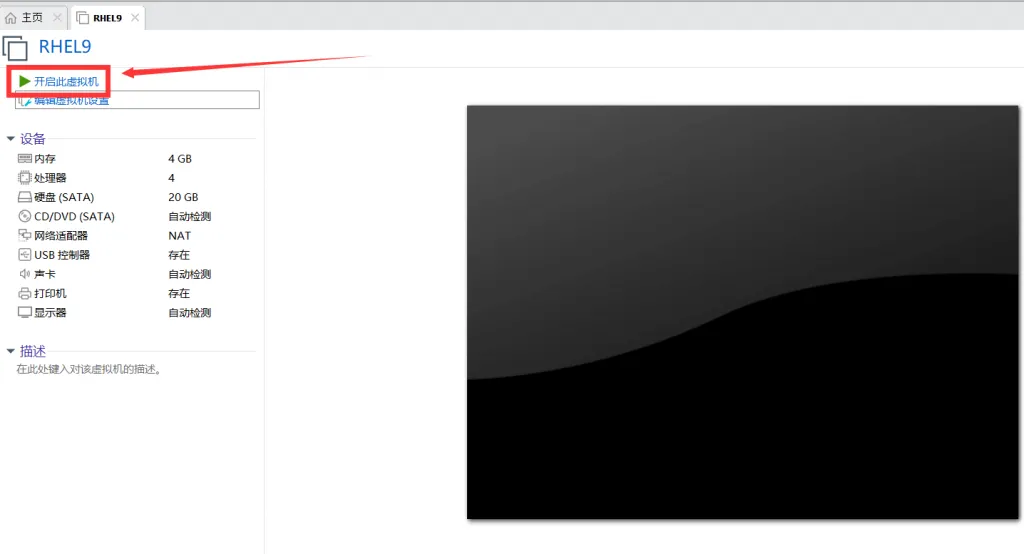 我们找到下载好的文件,打开我们上次安装好的VMware虚拟机,启动虚拟机,准备安装RHEL9.0。