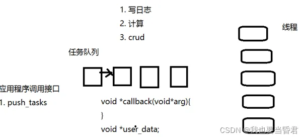这时我们外面写的应用程序调用的接口,调用接口时候就直接可以写成一个push_tasks,把这任务给抛出去。