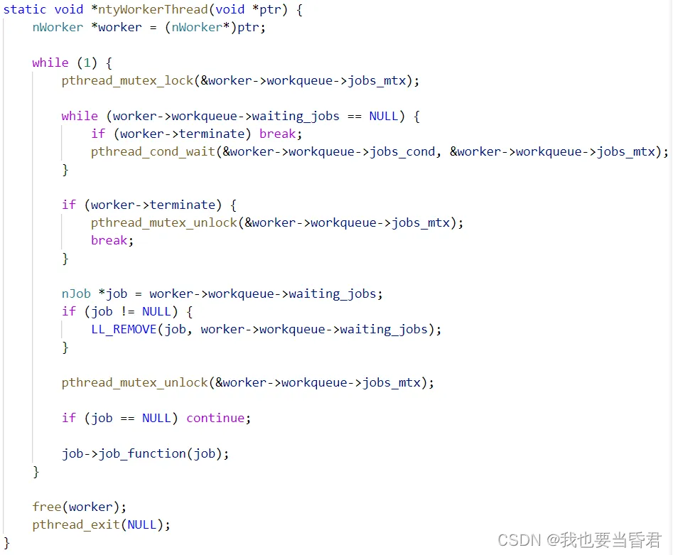 可以注意到NJOB和NWORKER是俩个不同的类型,不同的类型我们对她进行同样的操作,在C++里面使用模板来做是OK的但是在C代码里面没有模板这个概念,也就是模板的底层应该是宏定义,