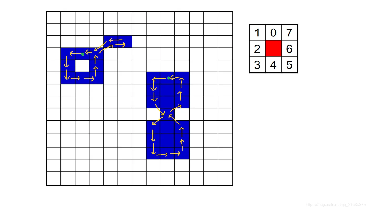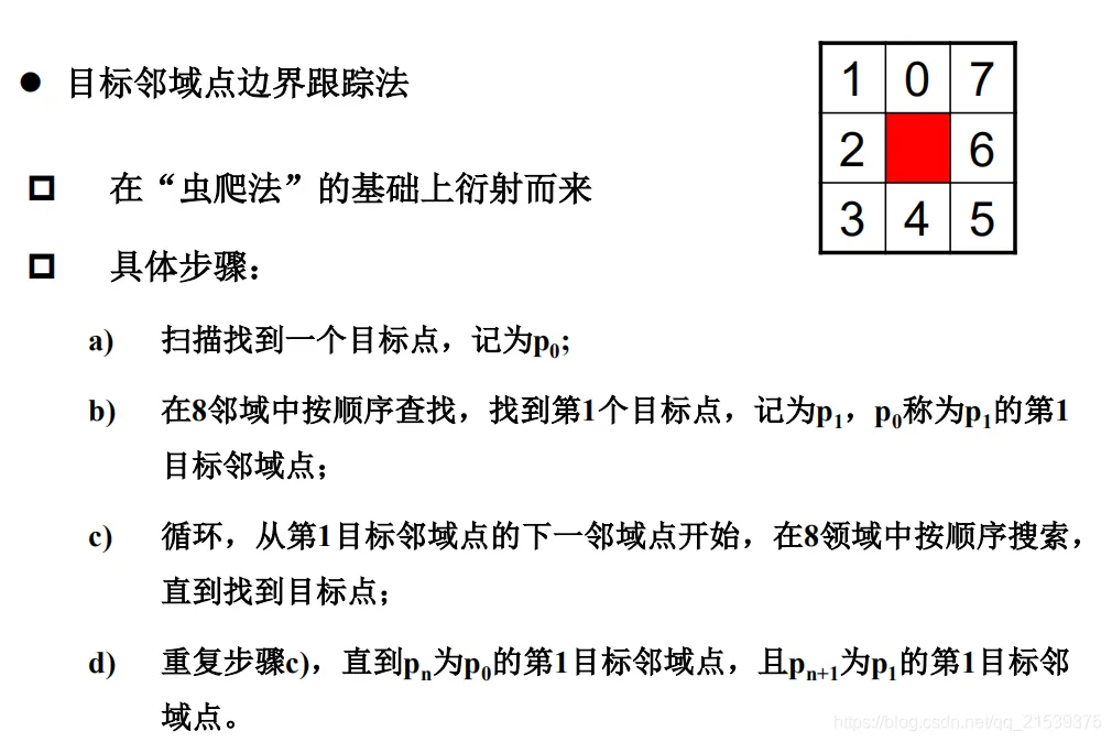 了解完它们的具体原理,那么来看一下如何进行目标邻域点边界跟踪法的