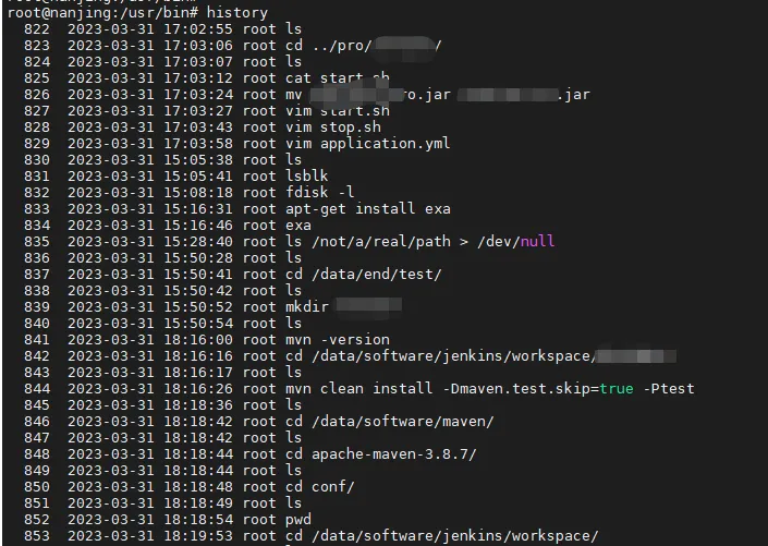 history命令允许你查看以前使用过的命令的列表。例如,history命令将显示以前输入的所有命令的列表,包括它们的编号。