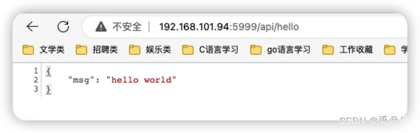 我们在这里增加了一个/api/hello的路由,当访问这个路由时,返回{"msg":"hello world"}。