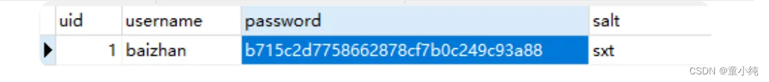 1、修改数据库和实体类,添加盐字段,并修改数据库用户密码为加盐加密后的数据。