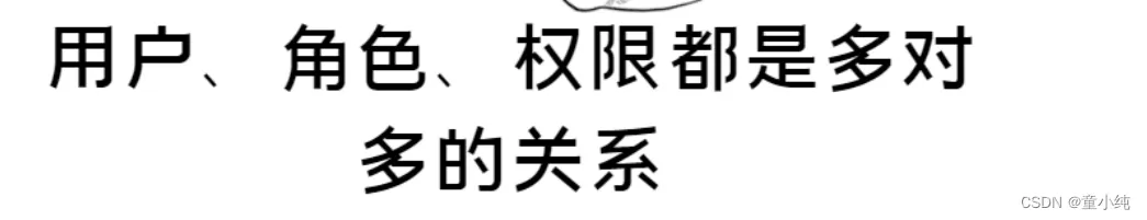 用户角色,角色权限都是多对多关系,即一个用户拥有多个角色, 一个角色拥有多个权限。如:张三拥有总经理和股东的角色,而总 经理拥有查询工资、查询报表的权限;股东拥有查寻股权的权限, 这样张三就拥有了查询工资、查询报表、查询股权的权限。