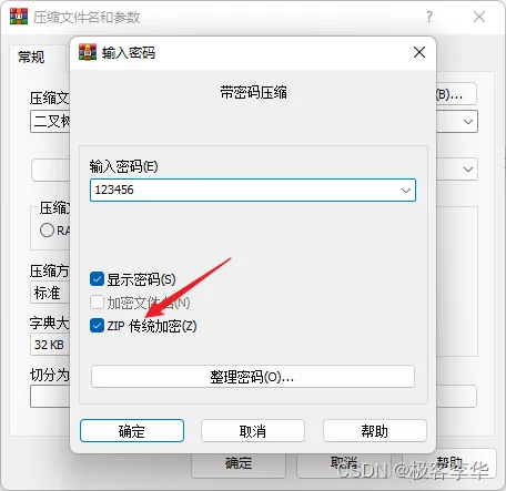 注意这里要点击ZIP传统加密。