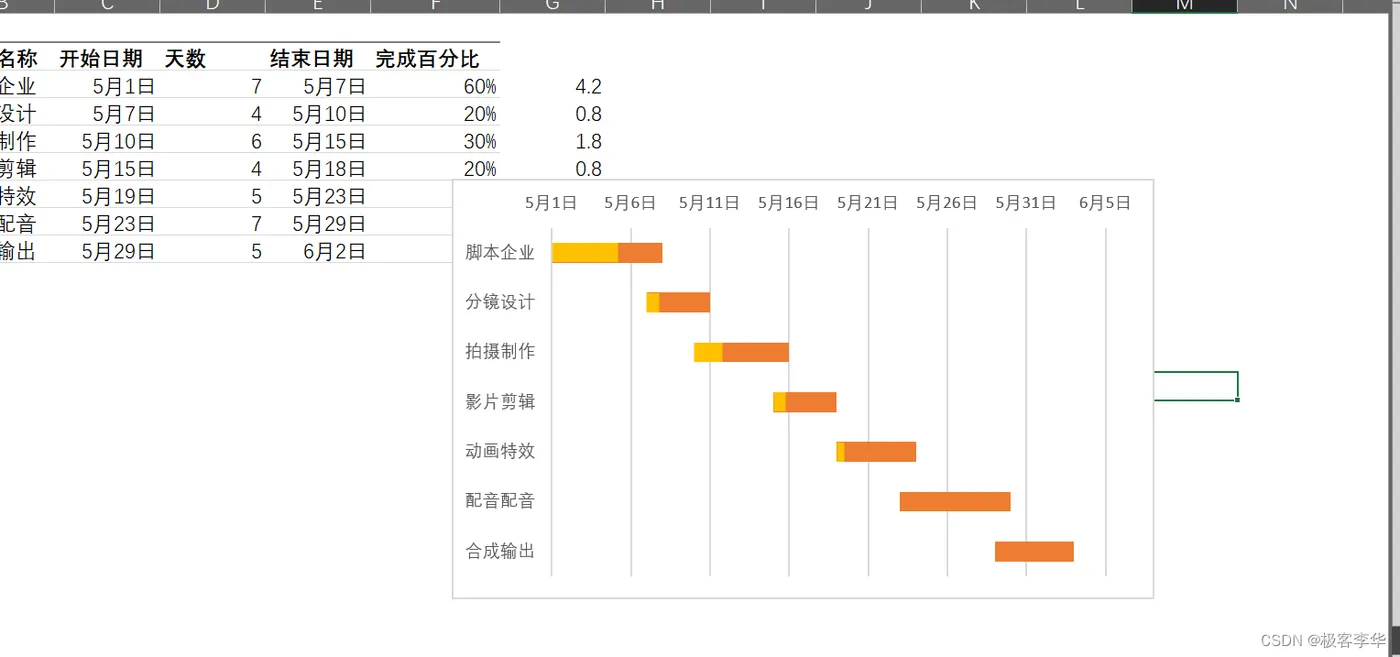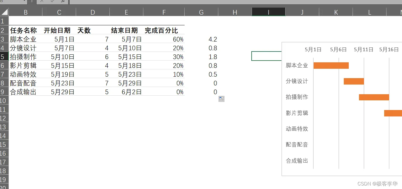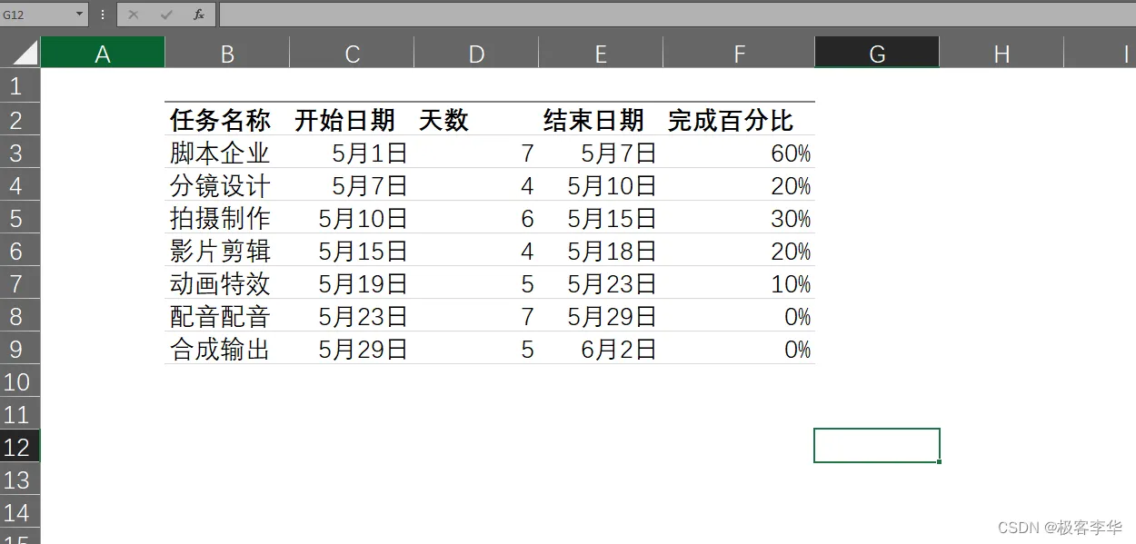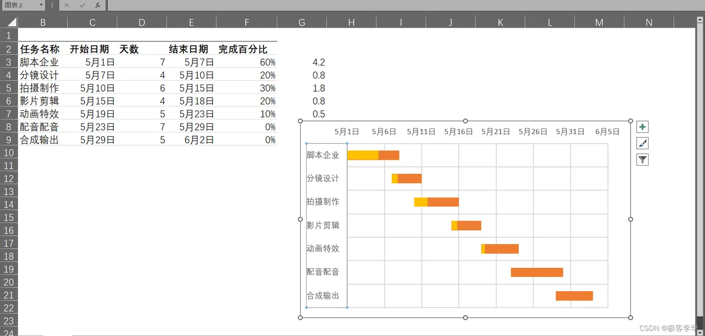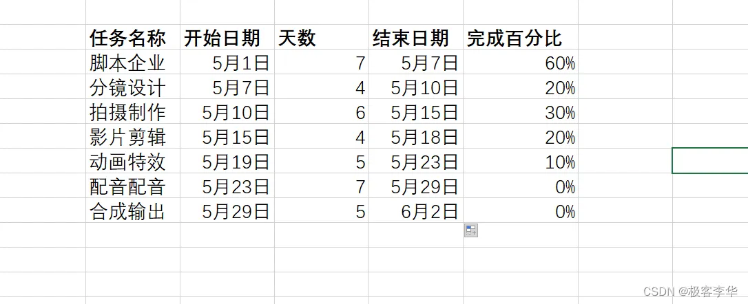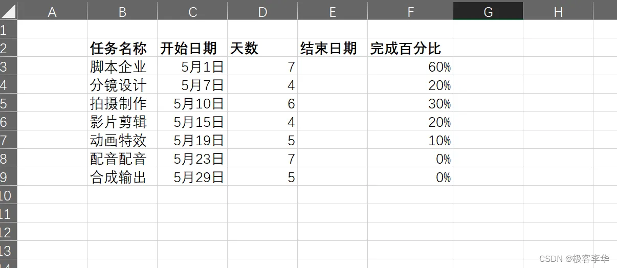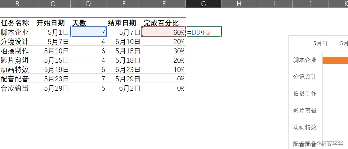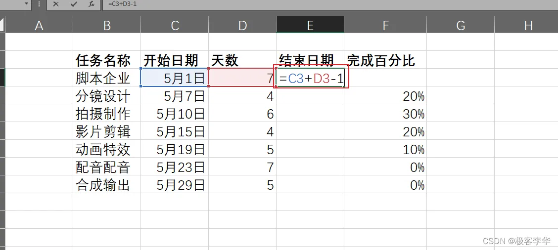 - 然后计算结束日期,输入这个公式,然后就可以获得每项任务的结束日期了。