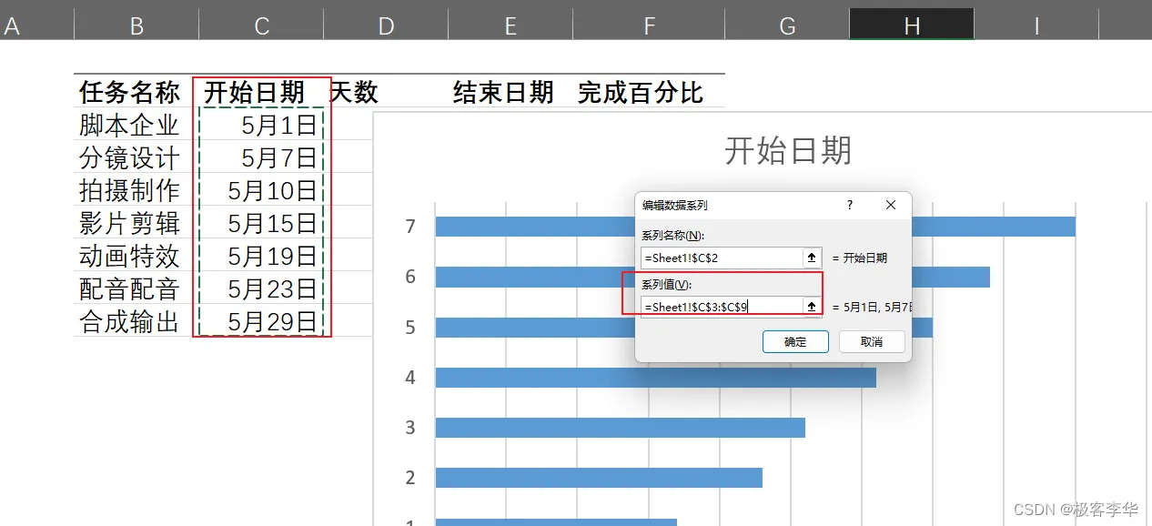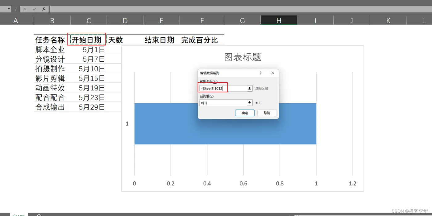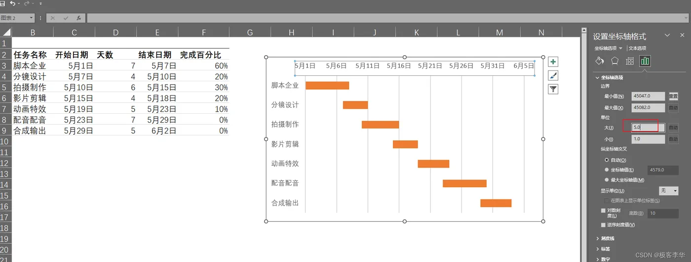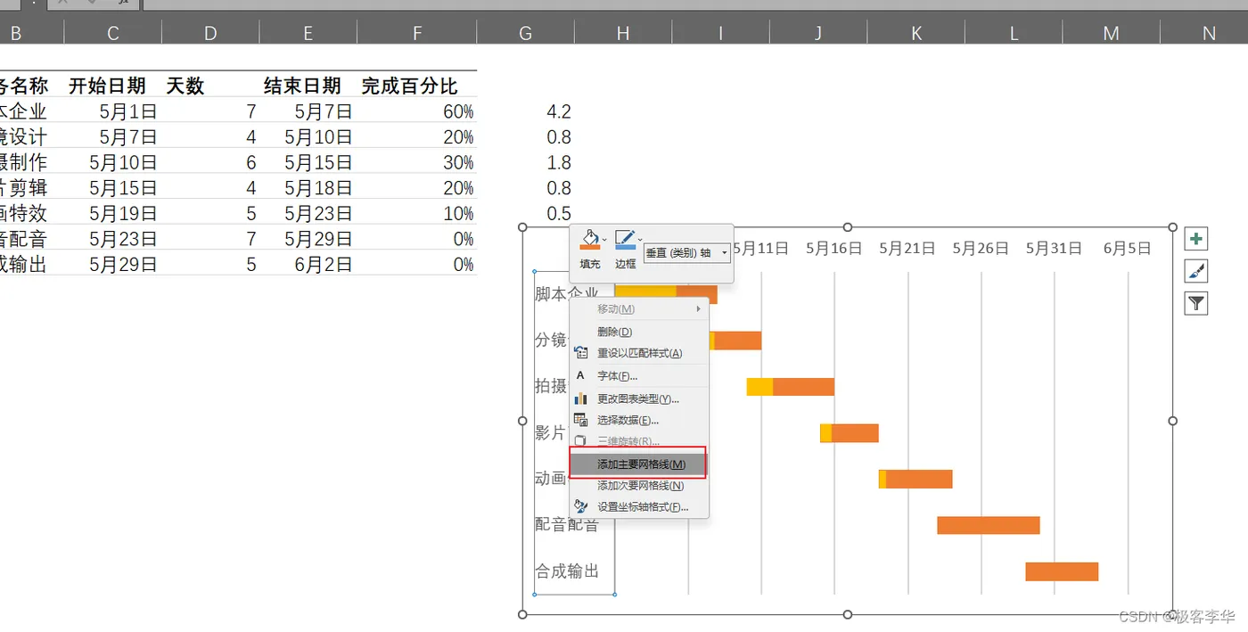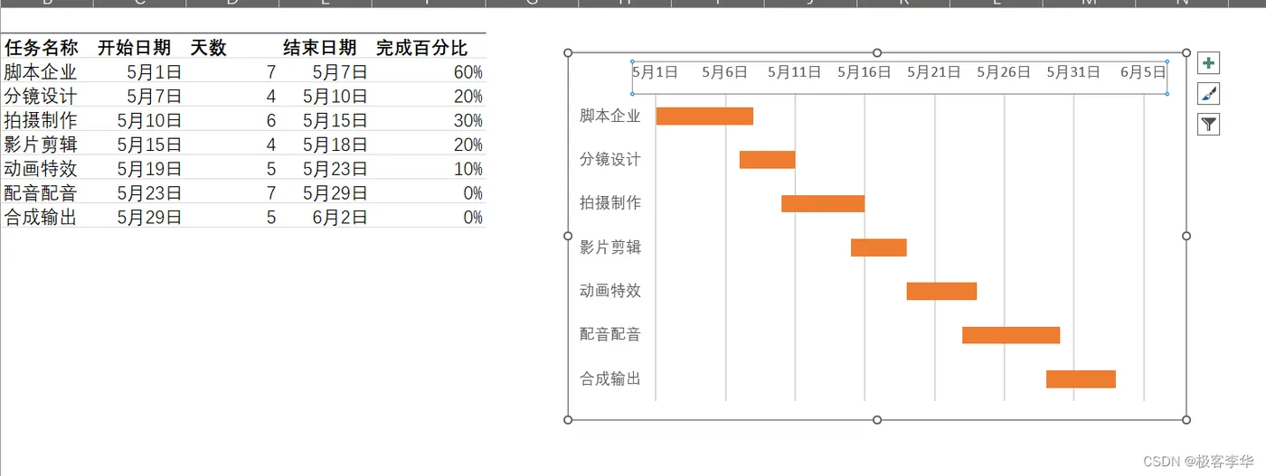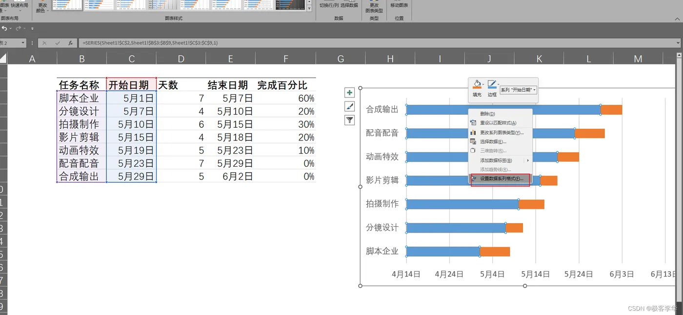 - 然后计算结束日期,输入这个公式,然后就可以获得每项任务的结束日期了。