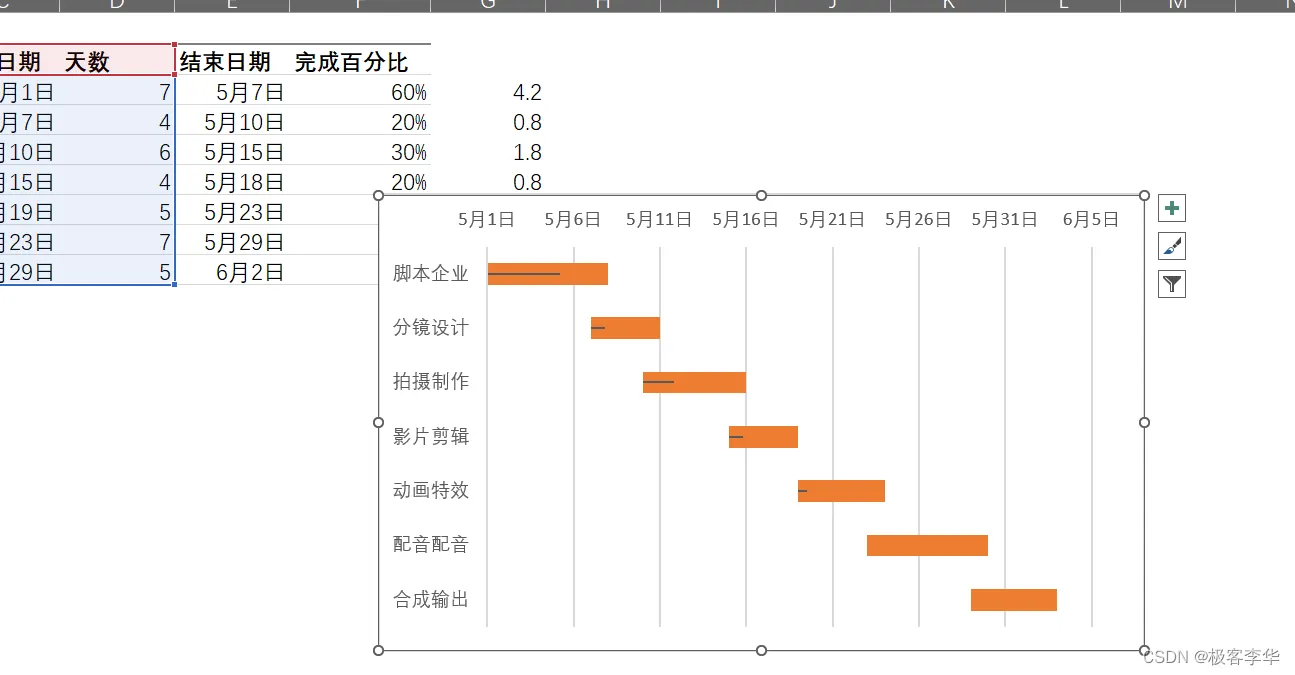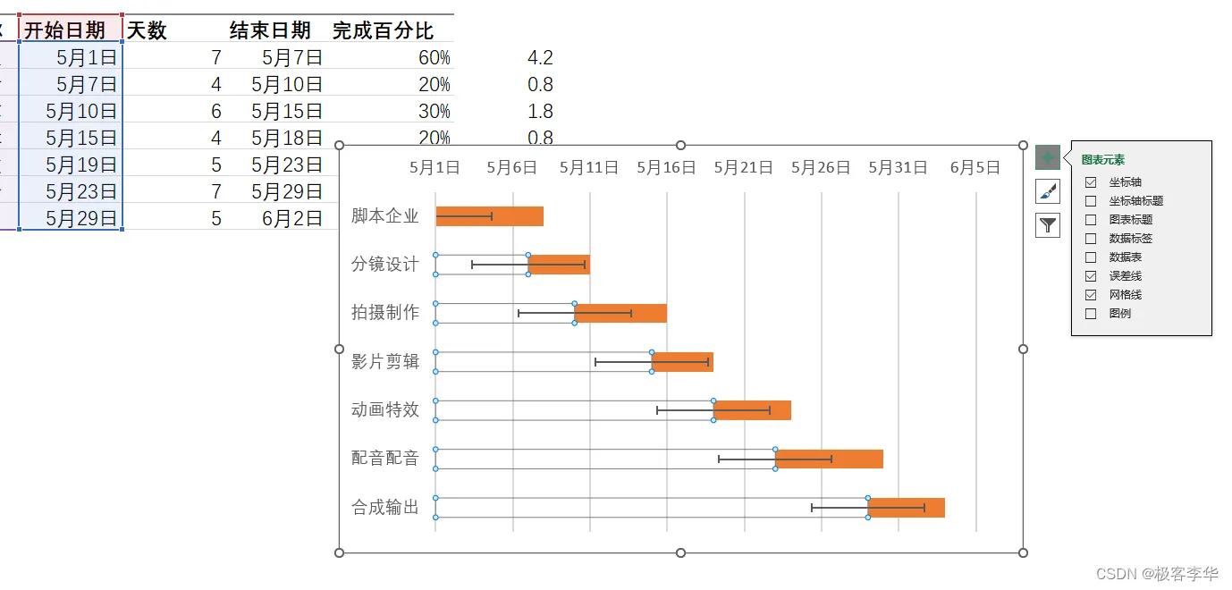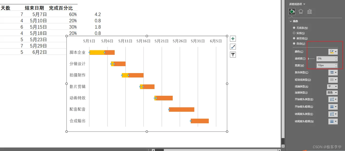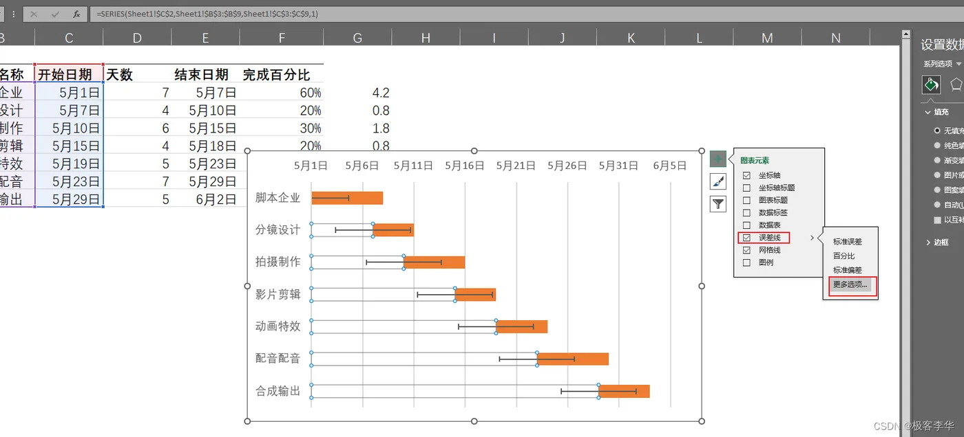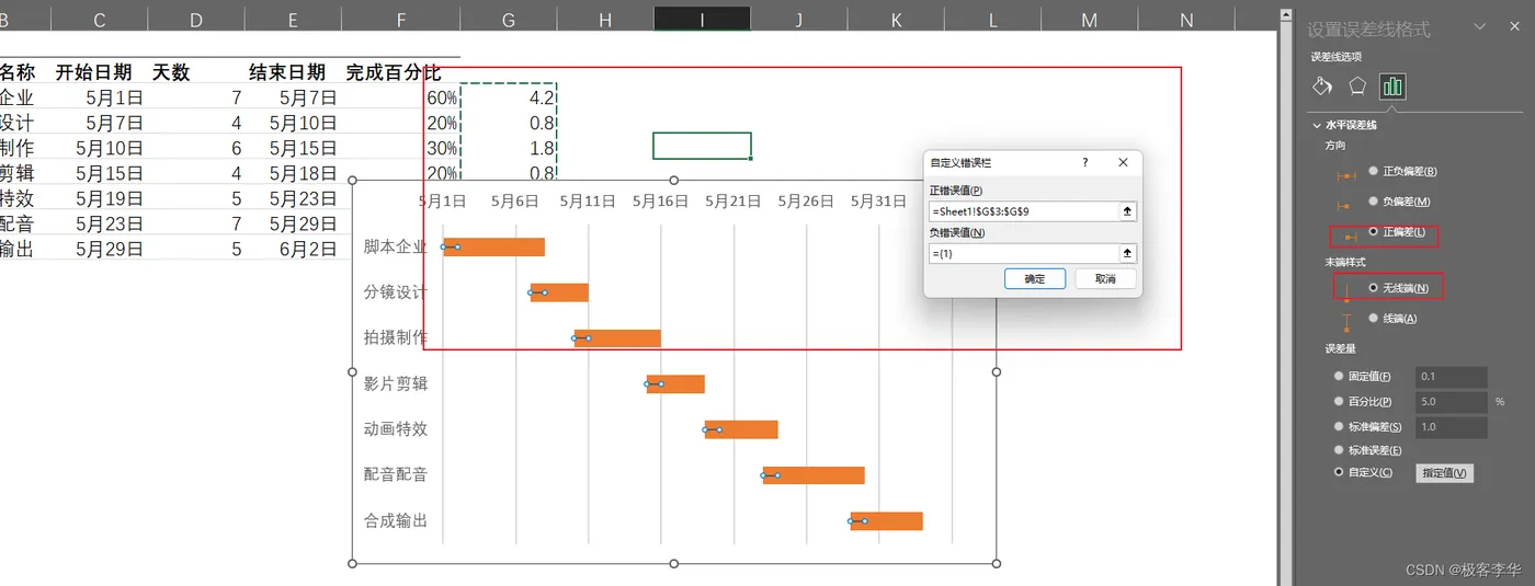 使用简单的公式进行计算,天数*完成百分比 - 制作误差线