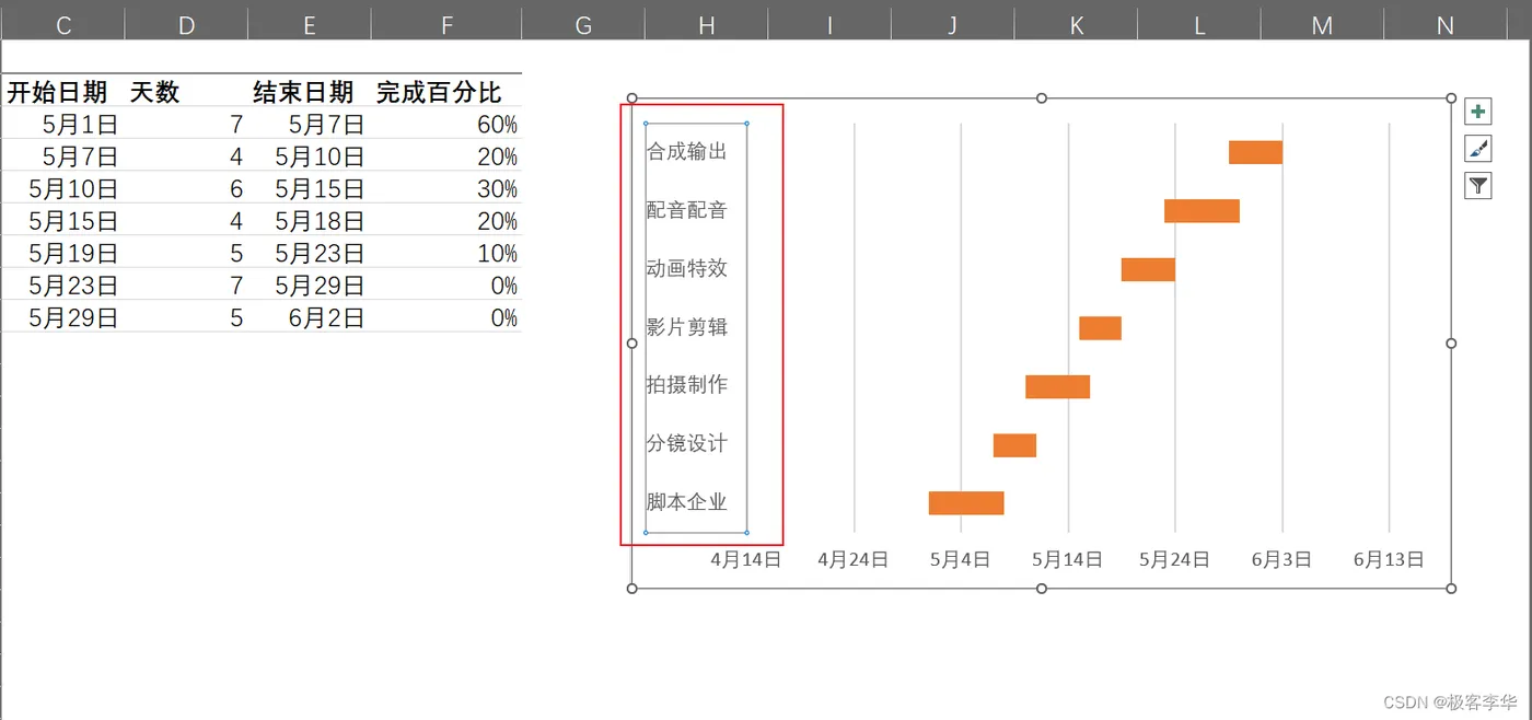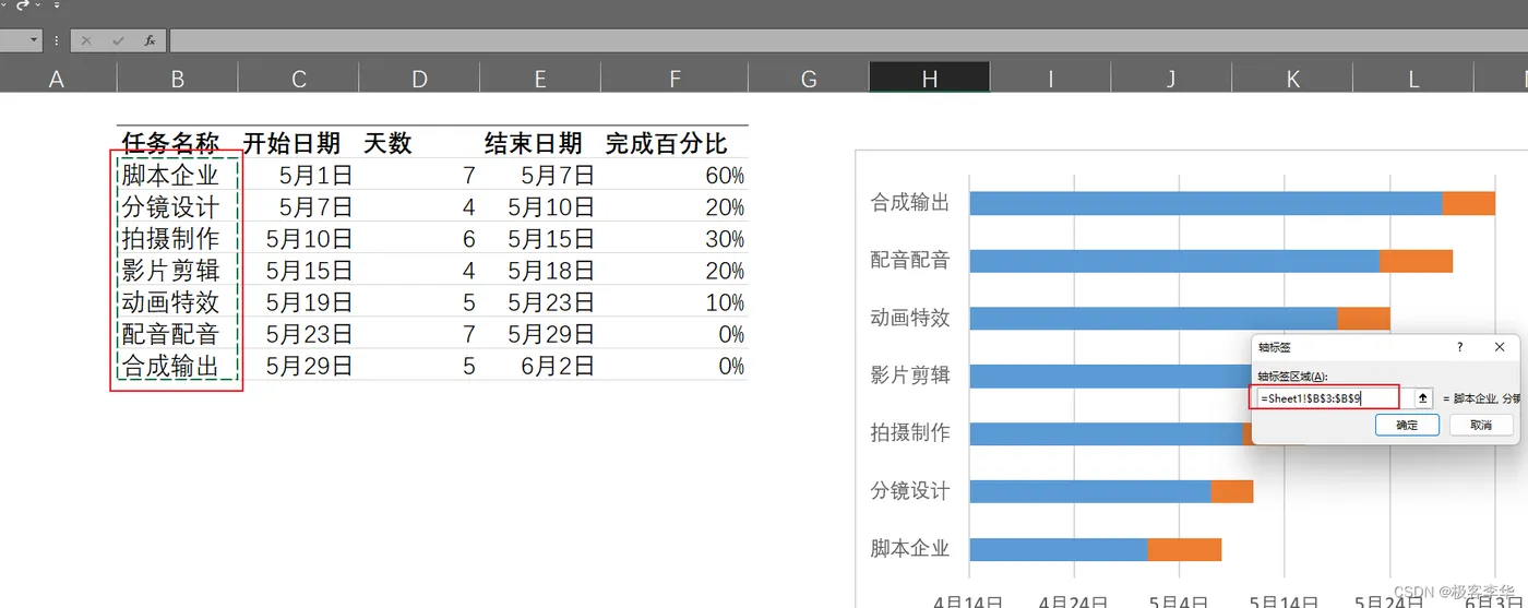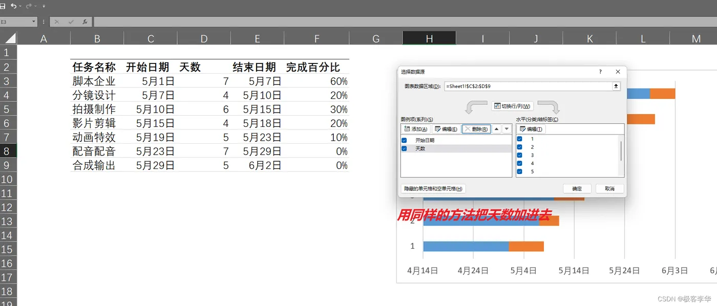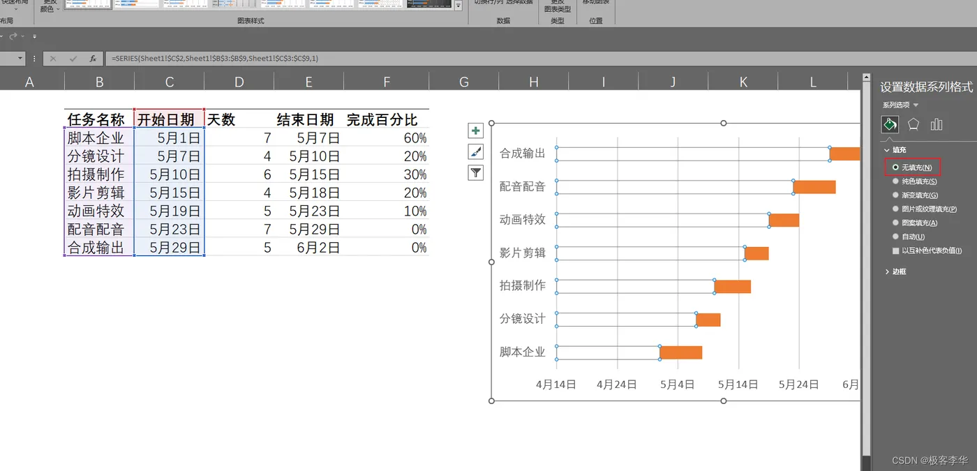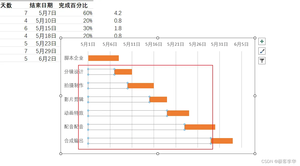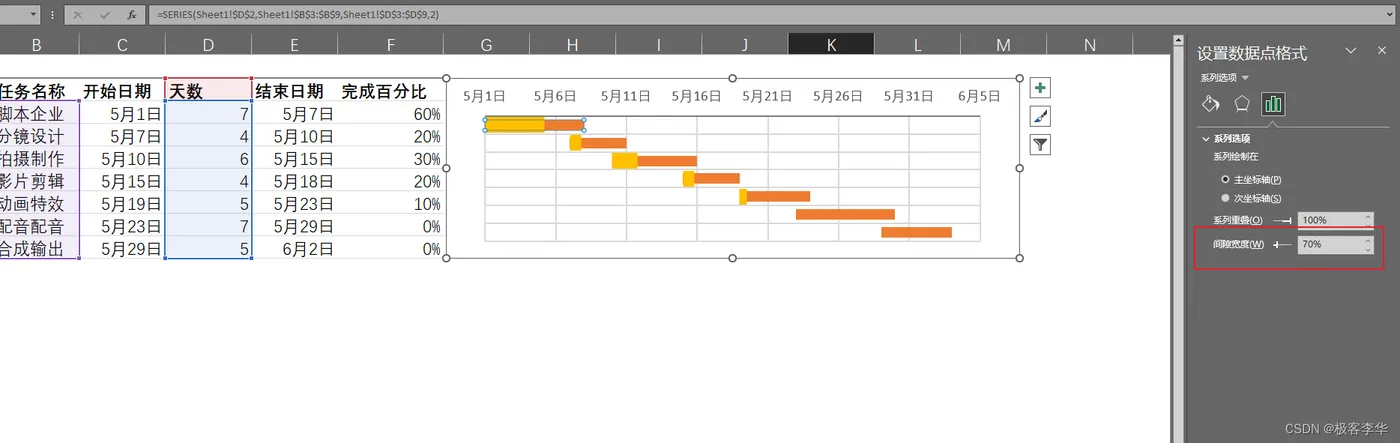 使用简单的公式进行计算,天数*完成百分比 - 制作误差线