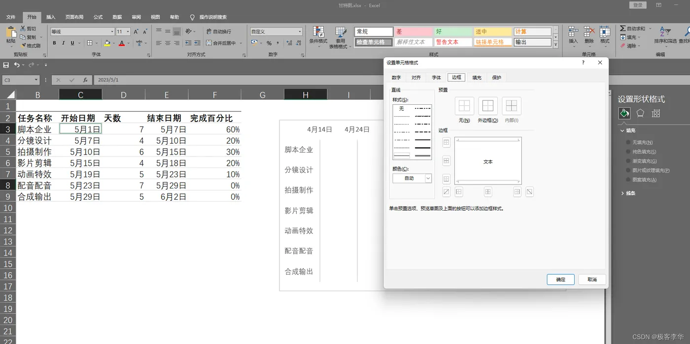 自定义一个框线的类型,具体的效果是这个样子。 - 开始绘制,选择堆积条形图