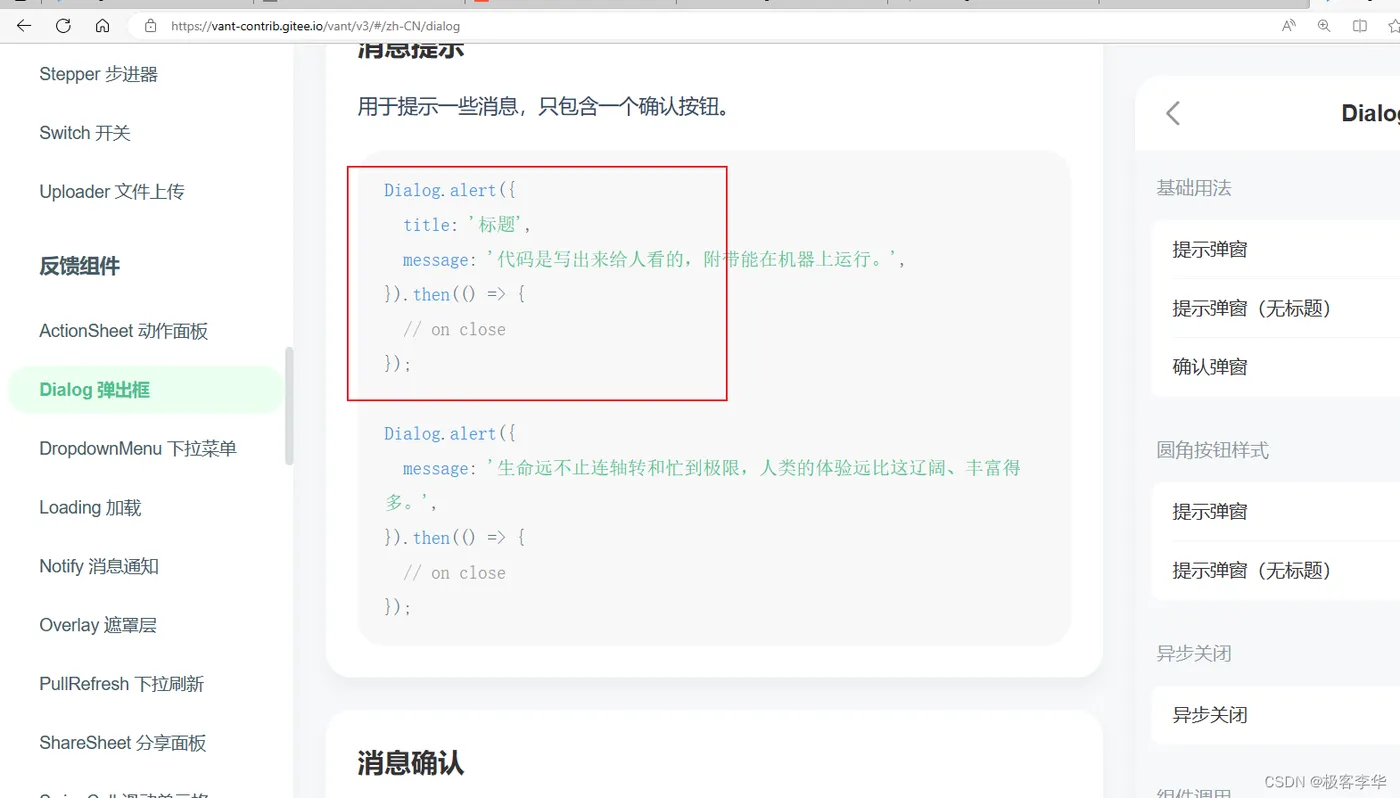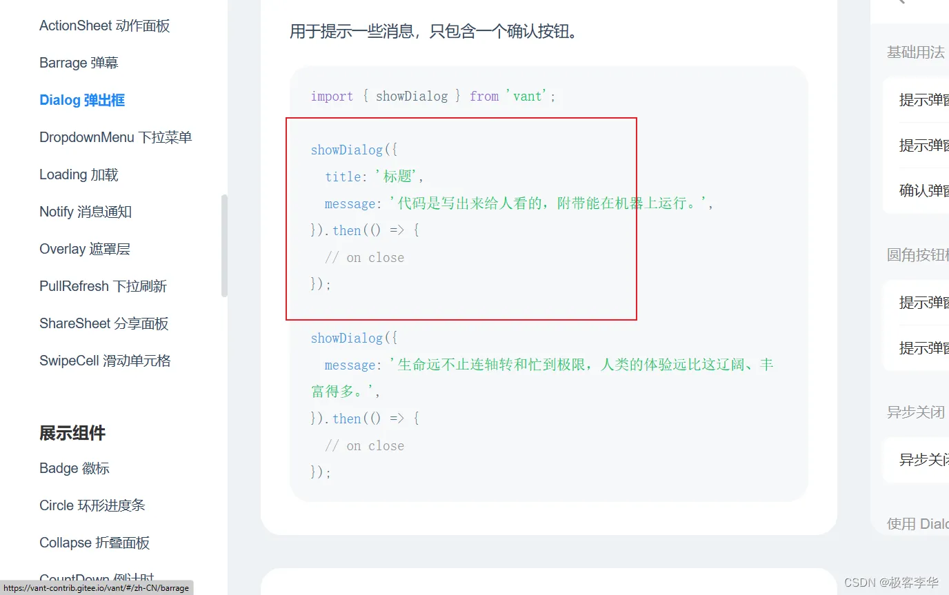 这是vant3中的Dialog组件,这个组件不论是全局注册还是局部注册都是会出现问题的,解决办法很简单。