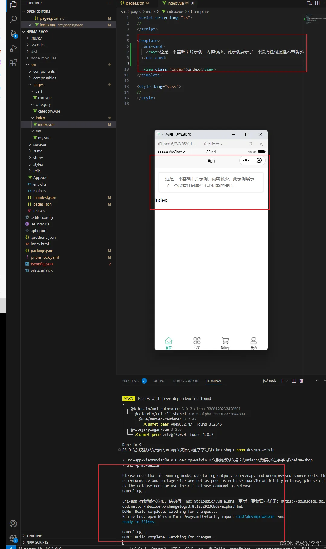 - 每次在vscode更新完之后,就需要再输入pnpm dev:mp-weixin ,更新一遍微信部分