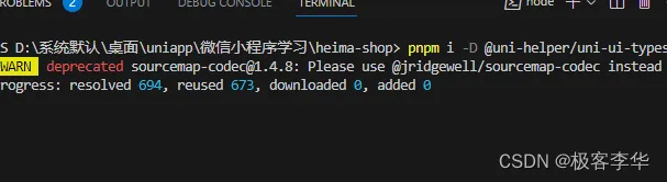 由于之前安装了pnpm所以,输入pnpm i @dcloudio/uni-ui安装