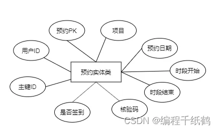 4、用户预约体检实体类:主要存储用户在线预约体检信息,内容包含用户编号、预约日期、开始时间段、结束时间段、核验码等信息。