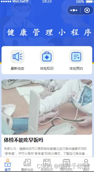 - 体检知识浏览:可以浏览后台发布的体检知识和健康知识信息。