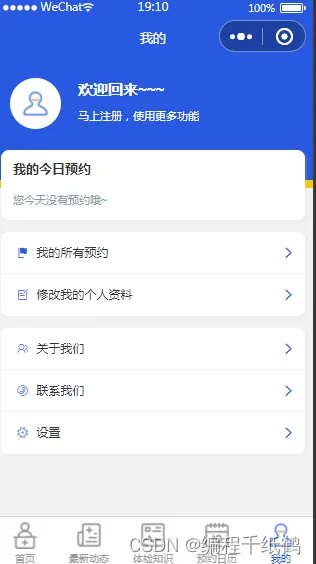 在我的功能模块中主要可以进行个人信息的修改管理,个人预约信息的查询管理等功能,具体展示如下图4-8所示: