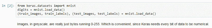 Keras 实际上具有内置的 MNIST 数字作为数据集,因此我们将使用这种便利并继续进行加载。