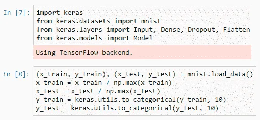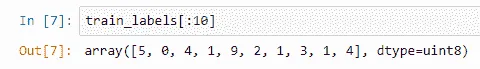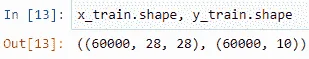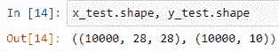 另外,查看测试数据。 您可以在第一个维度中看到10000(28,28),然后在第二个维度中看到10000,10,如以下屏幕截图所示: