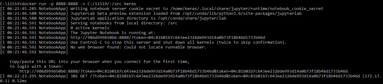 C:\11519>docker run -p 8888:8888 -v C:/11519/:/src keras