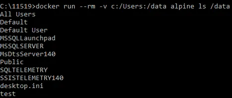 C:\11519>docker run --rm -v c:/Users:/data alpine ls /data