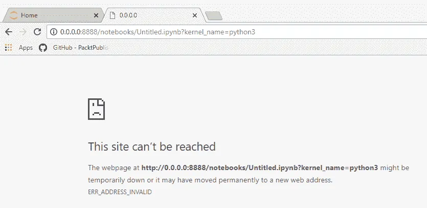 糟糕! 由于0.0.0.0不是真实的计算机,因此无法达到; 我们将其切换为localhost,点击Enter,然后确定我们有一个 IPython 笔记本: