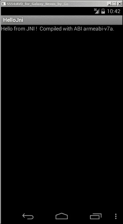 基本上,您在模拟器屏幕上看到的是从本机代码返回并由 Android 框架在文本视图中显示的字符串。
