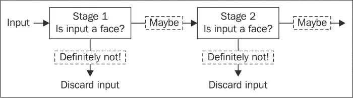 最后一个技巧为这种类型的分类器起了名字,以加快对任何给定图像的检测速度,其依据是我们需要使用尺寸为24x24的窗口扫描输入图像,例如 Viola 和 Jones 的作品。 但是,我们知道,在许多此类窗口中,不存在感兴趣的对象,因此需要对算法进行修改,以便尽快拒绝否定窗口并集中于可能的肯定窗口。