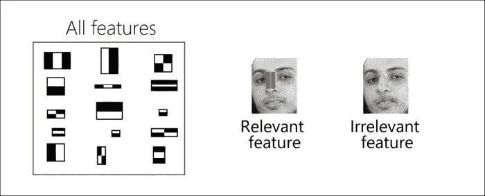 对于要分类的新图像,我们计算在输入图像上使用 Adaboost 选择的N个相关特征的数量,并根据所选阈值确定它是人脸还是非人脸。