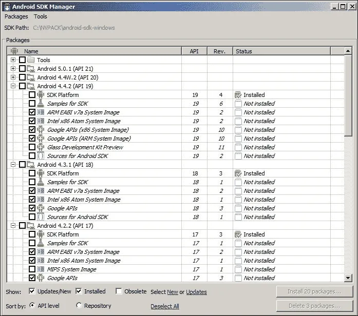 - 选择安装 Android SDK 工具,版本 20 或更高版本。