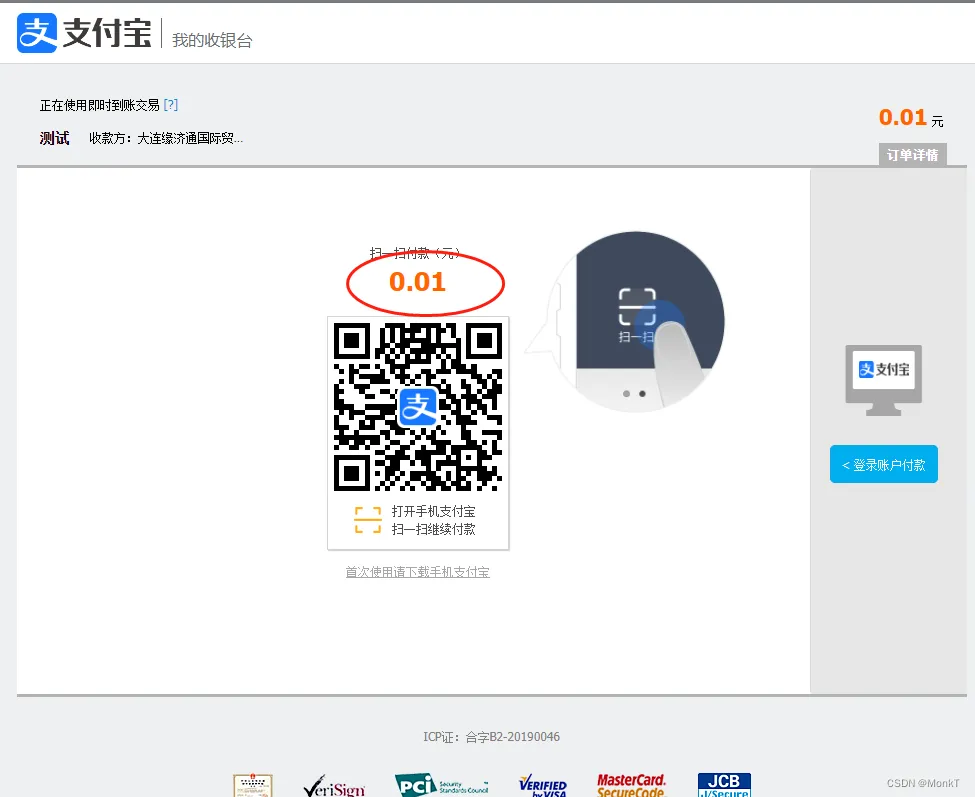 1、支付宝开发平台https://open.alipay.com/。需要进行企业级的账号,需要注册主要是营业执照和法人手机。