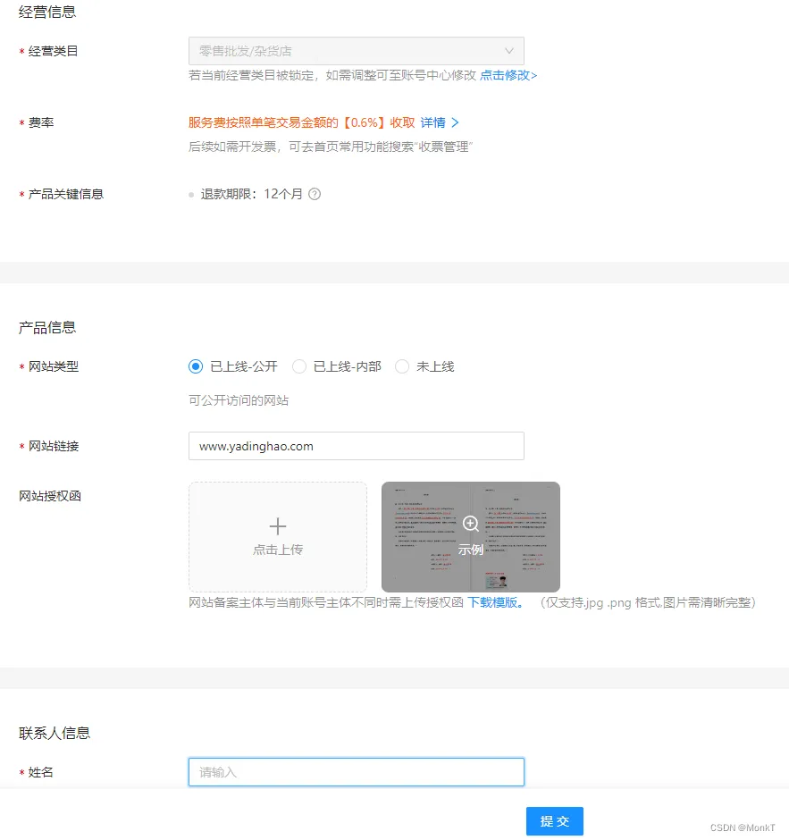 点击去开通,这时候跳转至支付宝平台。每个支付的开通不大一样,我这里是电脑网站支付。