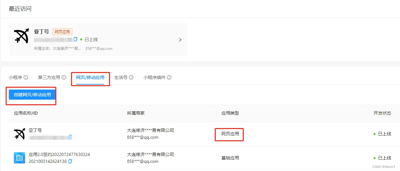 1、登陆支付宝开放平台,进入控制台。找到网页/移动应用,点击创建网页/移动应用。