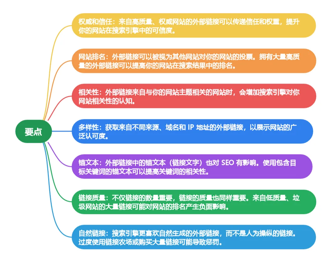 外部链接(也称为反向链接或入站链接)对网站的 SEO 有重要影响。以下是一些关于外部链接对 SEO 影响的要点: