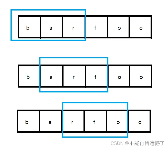 因为不仅可以从 b 开始,将字符数组分为多个字符串,还可以从a和r开始,所以这里我们需要进行 words 数组中每个单词长度的循环次数的操作。