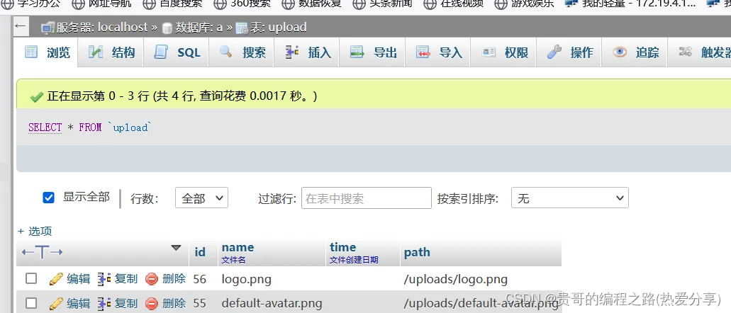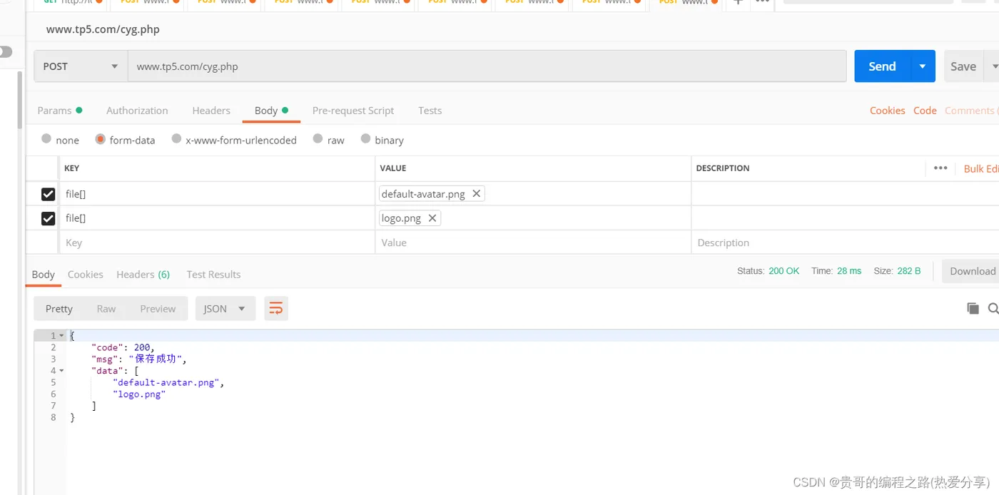 <?php $link=mysqli_connect('localhost','root','root','a');//链接数据库(数据库软件账号密码都是root.数据库是a) //然后是指定php链接数据库的字符集 mysqli_set_charset($link,'utf8');//字符串utf8 $file=dirname(__FILE__); $file1=str_replace('\\', '/',$file);//获取绝对路径D:/phpstudy_pro/WWW foreach($_FILES as $file){//遍历传过来的两个及以上的文件 $fileNum=count($file['name']); for ($i=0; $i < $fileNum; $i++) { $file3="/uploads/".$file['name'][$i];//获取路径 $today = date();//获取日期 echo move_uploaded_file($_FILES['file']['tmp_name'][$i],$file1.$file3); $sql = "INSERT INTO upload(name,time,path) VALUES ('{$file['name'][$i]}','{$today}','{$file3}')";//插入到数据库中 mysqli_query($link,$sql);//运行 } echo json_encode(["code"=>200,"msg"=>'保存成功',"data"=>$file['name']]);//显示 }