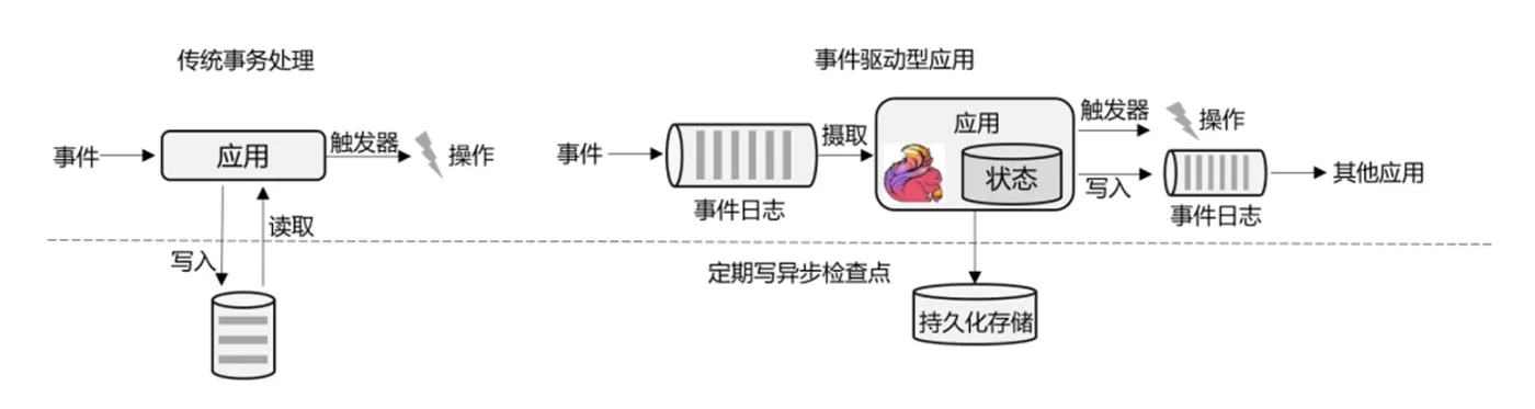 这其实跟传统事务处理本质上是一样的,区别在于基于有状态流处理的事件驱动应用,不 再需要查询远程数据库,而是在本地访问它们的数据, 这样在吞吐量和延迟方 面就可以有更好的性能。
