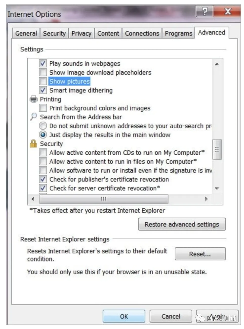 2)不访问图像:暂时,你可以关闭访问,看看文本是否合理的内容,因为有些人可能没有访问权限,或者有时它需要很长时间来加载图像。您可以通过以下方式关闭浏览器:Internet Explorer:工具->Internet选项->高级->显示图片(取消勾选)。