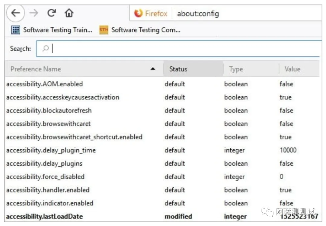 Firefox:打开Firefox并在地址栏中输入about:config,您将得到如下所示的输出。