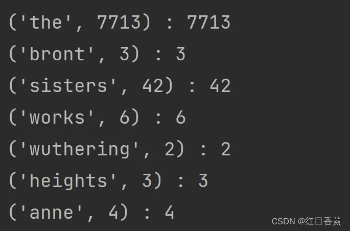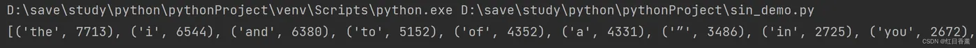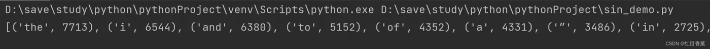 我们查看一下效果:根据x[1]进行倒序排列,我这里仅遍历了词频大于100的单词。