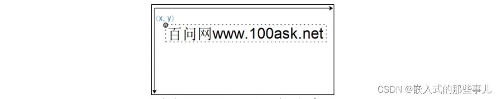 文字的外框用虚线表示,外框的左上角坐标就是(x, y)。