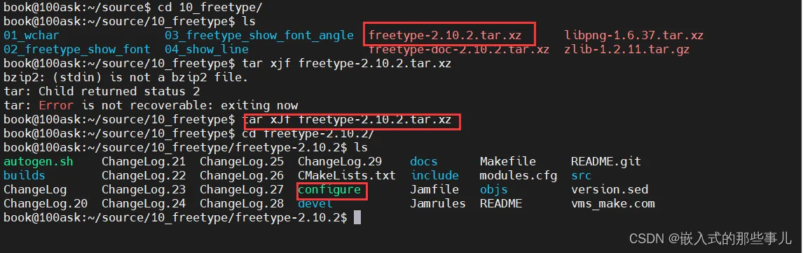 book@100ask:~/source/10_freetype/freetype-2.10.2$ ./configure --host=arm-buildroot-linux-gnueabihf --prefix=$PWD/tmp book@100ask:~/source/10_freetype/freetype-2.10.2$ make book@100ask:~/source/10_freetype/freetype-2.10.2$ make install