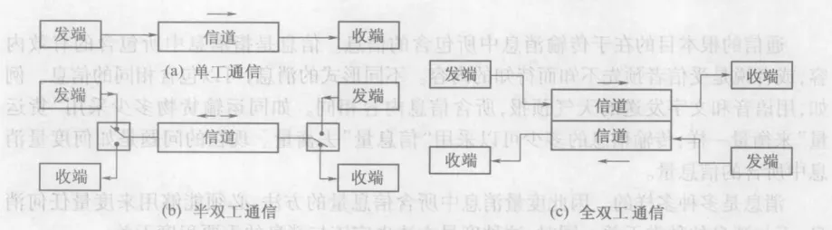 对于点与点之间的通信,按消息传递的方向与时间关系,通信方式可分为单工、半双工及全双工通信。