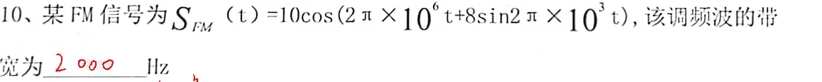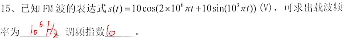17、设x()为调制信号, 调相波的表示式为: 则PM调制方式的瞬时角频率偏差为: