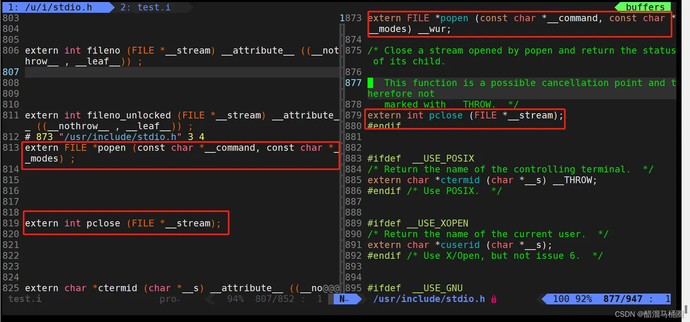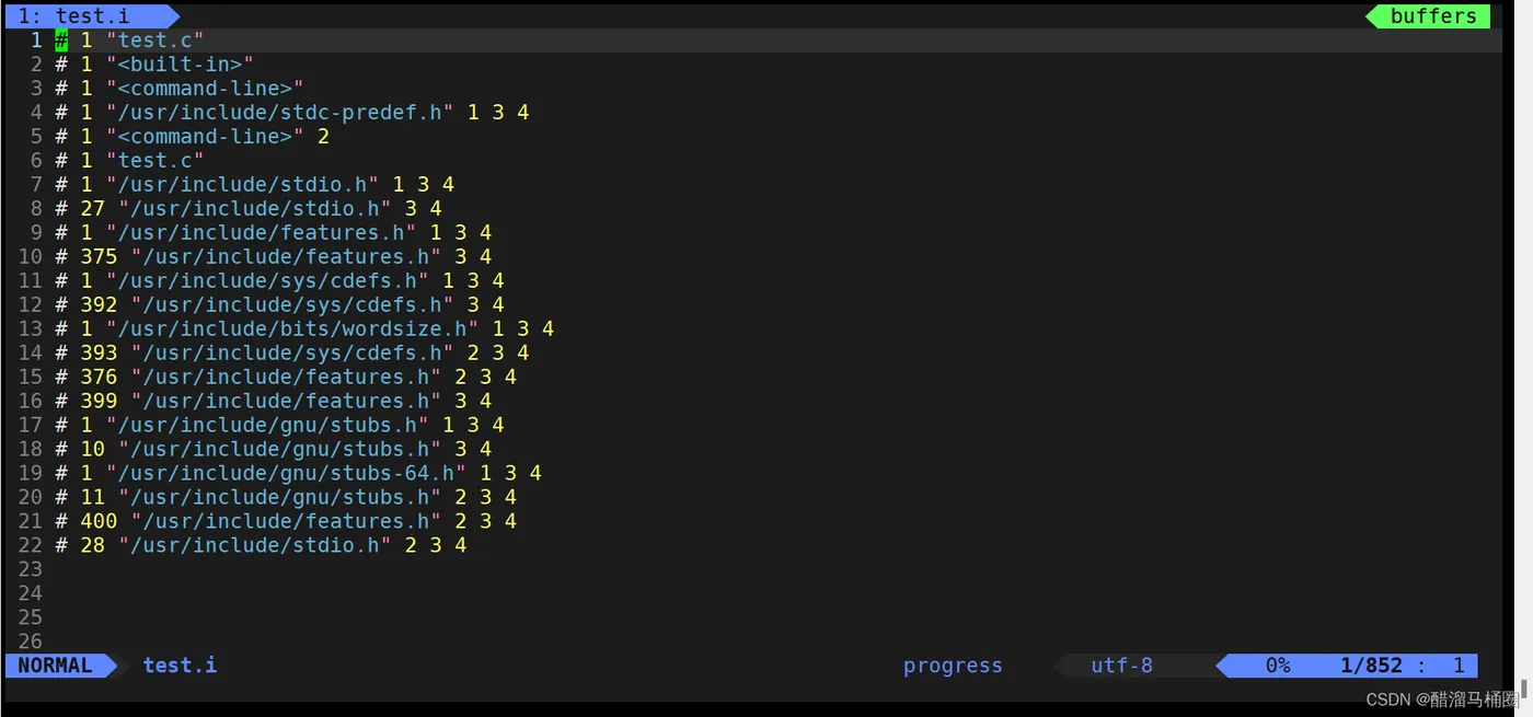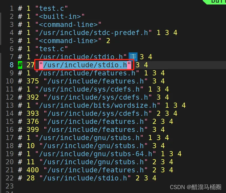 我们的test.c文件中只有24行,结果test.i中多出800多行,那多出来的这么多是什么呢?