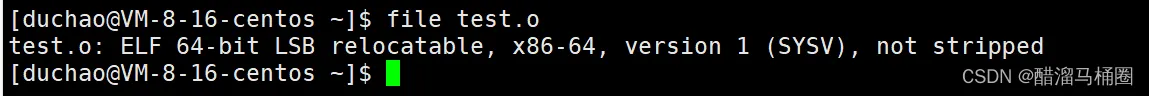 gcc -c 将test.s文件转成test.o文件,.o表示.obj,在vs中我们编译文件就会产生.obj文件