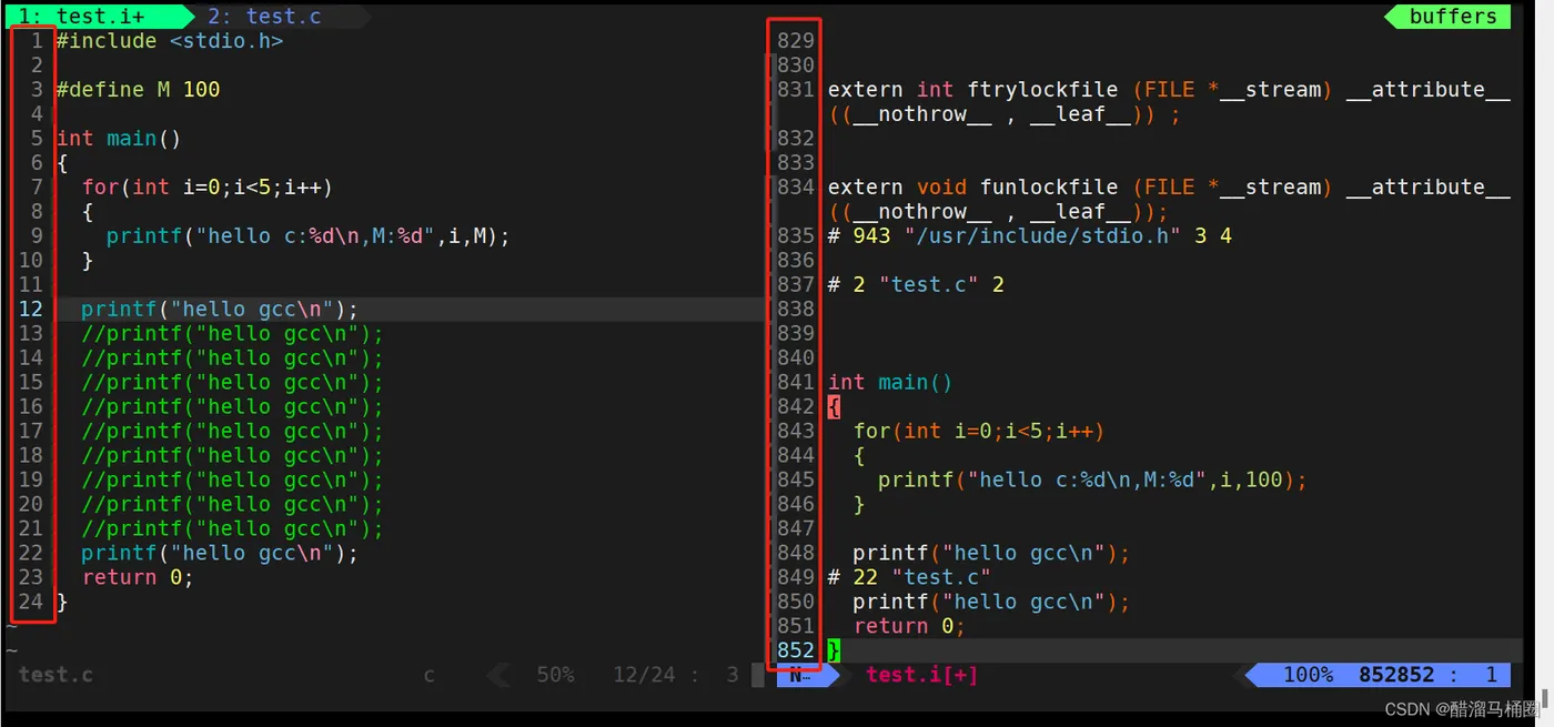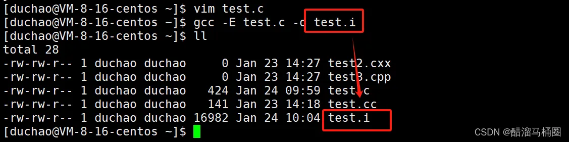 形成一个test.i文件,文件中保存的是gcc -E产生的临时结果