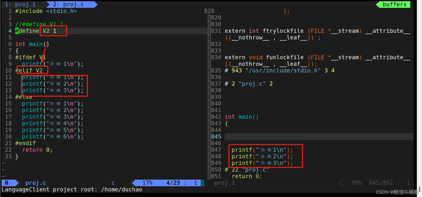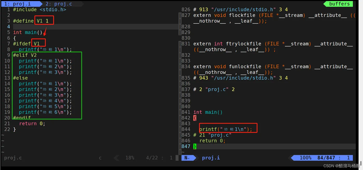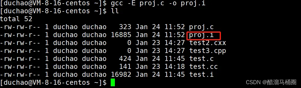 我们编译成proj.i看一下
