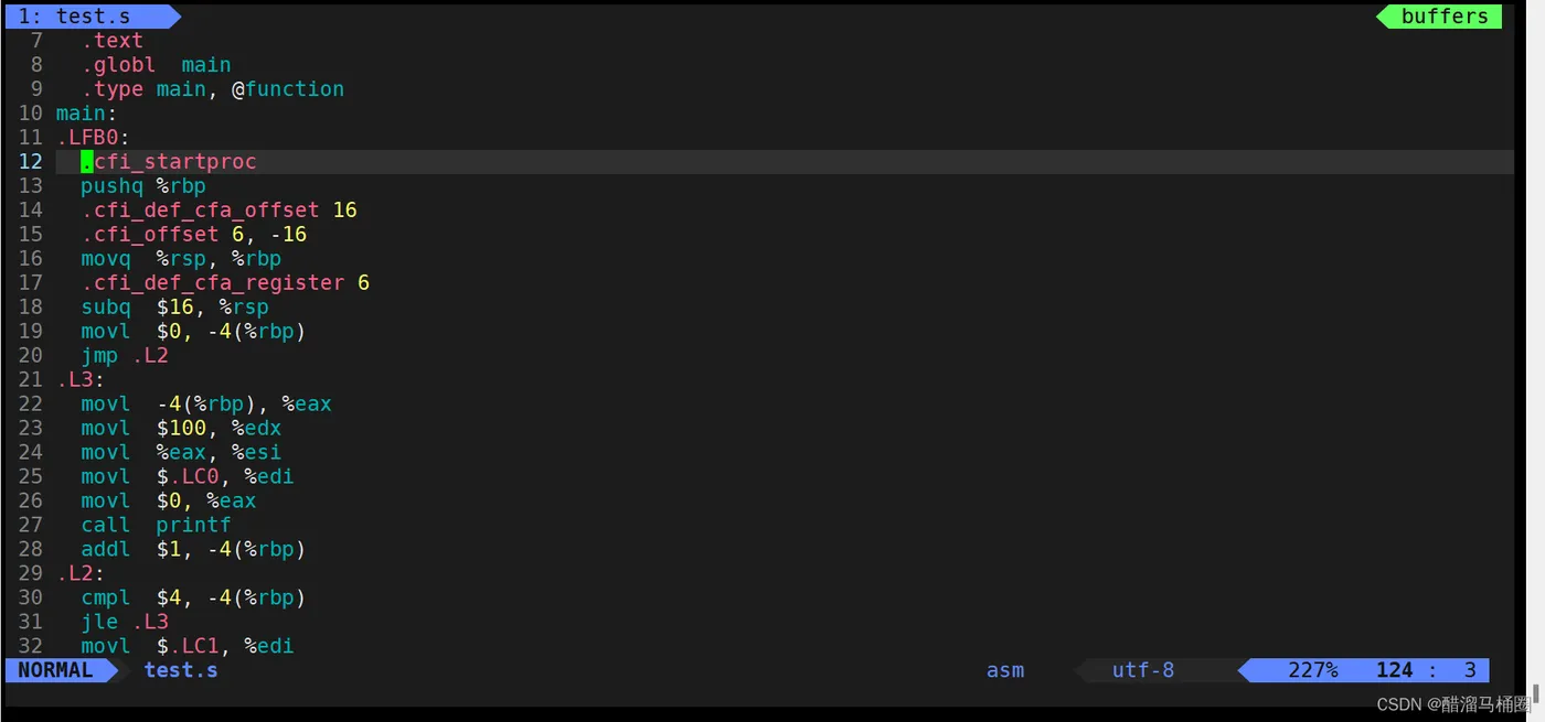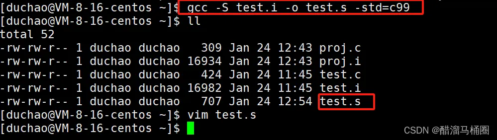 gcc -S产生一个test.s的临时结果