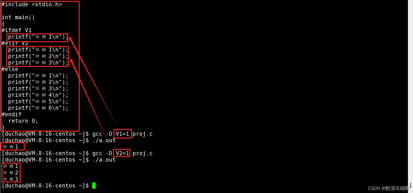 我们可以不在文件中宏定义,可以通过gcc -D进行命令行式的宏定义,这样我们就可以动态地向源代码添加宏
