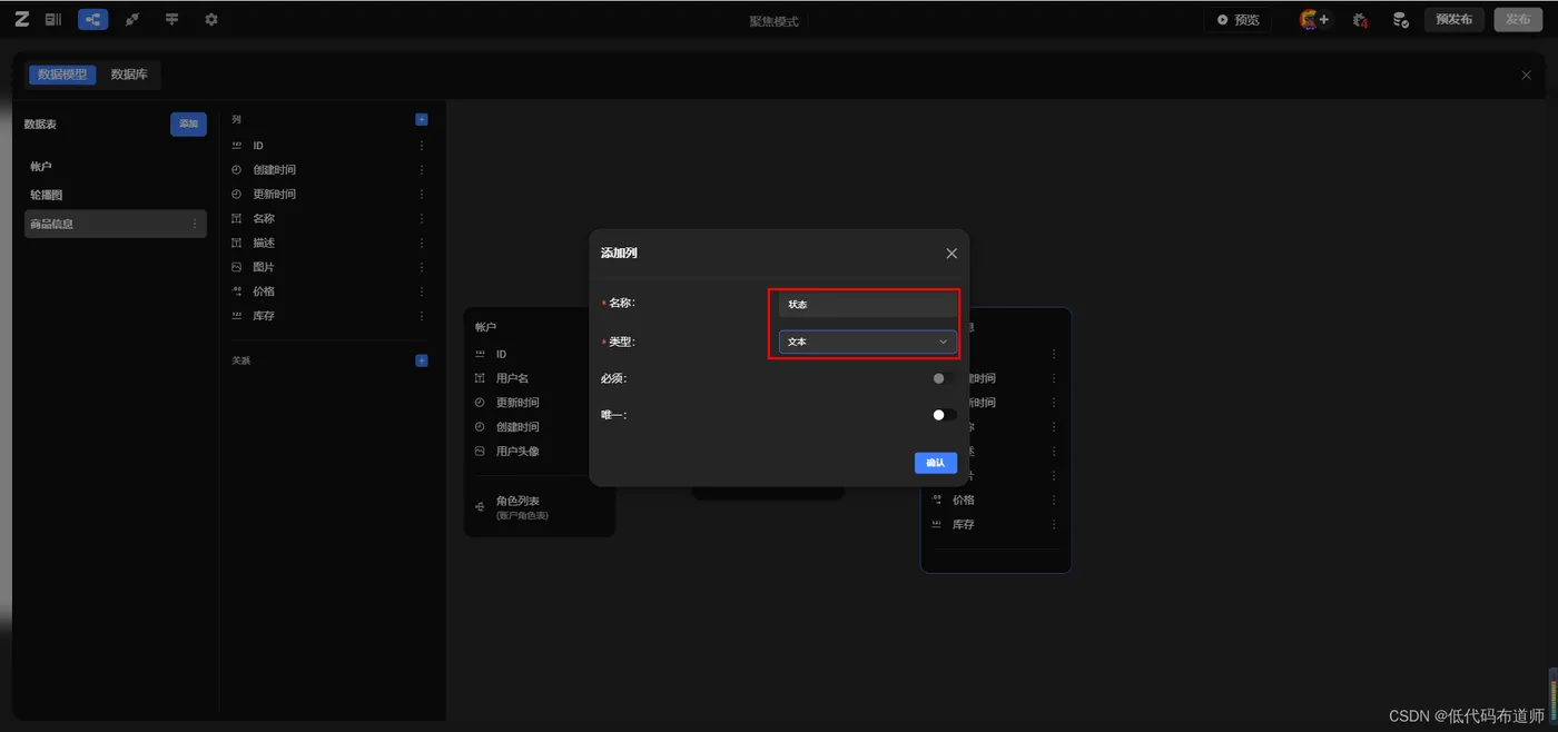 字段更新后要点击顶部导航条的后端更新,让修改生效